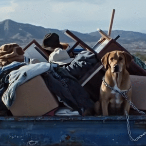 I was about fifteen minutes out of the city when I saw it. A rusty blue flatbed hauling what looked like junk—clothes, cracked dishes, wires, even a…