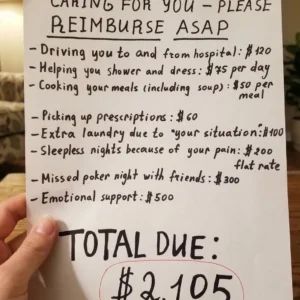 Three days after returning home from major surgery, I noticed something on our refrigerator that shifted how I viewed my marriage. It was an itemized note listing…