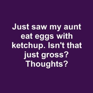 “Just saw my aunt putting ketchup on her eggs. Yikes! Thoughts?”