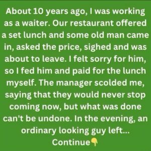 About ten years ago, I was working as a waiter in a modest restaurant. We offered a basic set lunch, nothing fancy, just affordable comfort food. One…